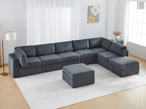 Oversized Modular Sectional Sofa Set, Plush Faux Rabbit Fur Convertible U Shaped Couch with Storage, 8 Seater Corduroy Sofa with Ottomans and Reversible Chaise for Living Room, Office (Blue Grey)