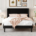 SHA CERLIN Queen Size Velvet Bed Frame with Vertical Channel Tufted Wingback Headboard, Upholstered Platform Bed with Wood Slats, No Box Spring Needed, Easy Assembly, Black
