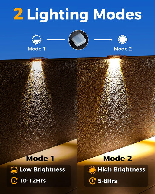 LUHLEE High Bright Solar Fence Lights, 4 Pack Wall Lights Outdoor, IP65 Waterproof Fence Solar Lights Outdoor for Backyard,Wall,Deck,Gutter,Porch,Step (Warm White 4 Pack)