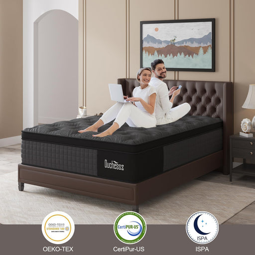 Duchessz Queen Mattress, 10 Inch Hybrid Mattress Black with Gel Memory Foam and Individually Pocket Innerspring Euro Top Mattress Medium Firm for Motion Isolation, Edge Support, 100 Night Trial