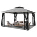 GARTOO 11'x13' Outdoor Patio Gazebo - Porch Gazebo with Polyester Roof & Breathable Netting, Best for Garden, Lawn, Backyard Deck (Grey)