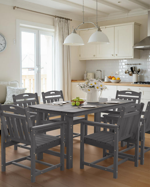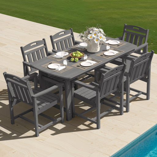 HDPE Outdoor Dining Set 7-Piece Outdoor Table and Chairs with Umbrella Hole, All-Weather Patio Dining Set for 6, Durable Patio Furniture Set for Backyard, Garden, Lawn & Poolside, Grey