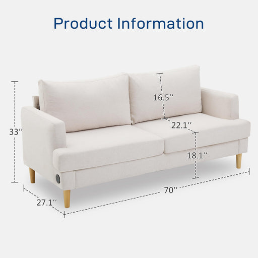 Small Loveseat Sofa for Living Room - 70'' Beige Couch with USB for Bedroom and Office - Modern Love Seat Sofa Deep Seating for Apartment Furniture - Comfy Two Seater Couches Sleeper Sofas (Off-white)