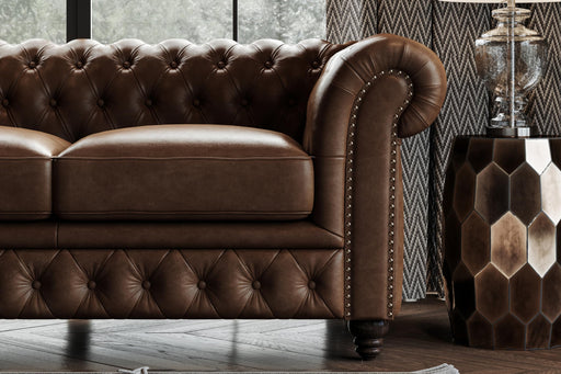 BOWERY HILL Traditional Geuine Leather Sofa in Marco Brown Finish
