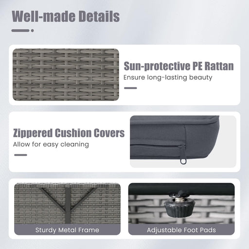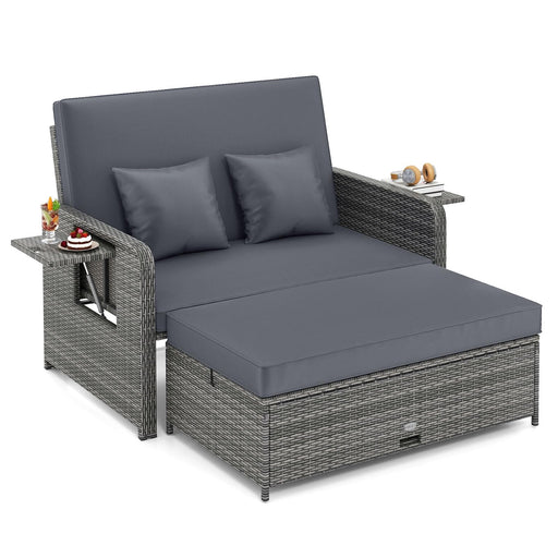 Tangkula Patio Rattan Daybed with 4-Level Adjustable Backrest, Outdoor PE Wicker Loveseat with Storage Ottoman & Folding Side Table, Double Sunbed for Balcony, Backyard & Poolside, Grey