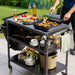 • 【Tabletop Load Capacity 200 LBS】This outdoor grill cart is made of 1mm powder-coated alloy steel sheet, with four sturdy 4cm thick legs supporting the tabletop, making it heavier and more stable overall, ensuring that it can hold most countertop grills, griddles and pizza ovens