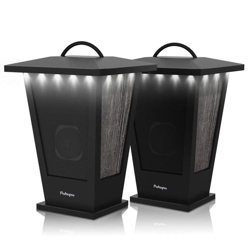 pohopa Bluetooth Speakers Waterproof, 2 Packs True Wireless Stereo Sound 20W Dual Pairing Lantern Indoor Outdoor Speakers with 20 Piece LED Lights, Rich Bass, Pinao Black