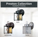 - OUTDOOR LANTERN SCONCE: Add superior illumination and a touch of elegance to your home's exterior with the Preston wall mount lantern sconce. The clear glass works with the sharp lines and rounded back plate to provide a clean looking aesthetic perfect for complementing a wide range of house settings, and our sconce lanterns are treated to prevent pitting, tarnishing, and discoloration so that they will provide welcoming and safe lighting for years to come