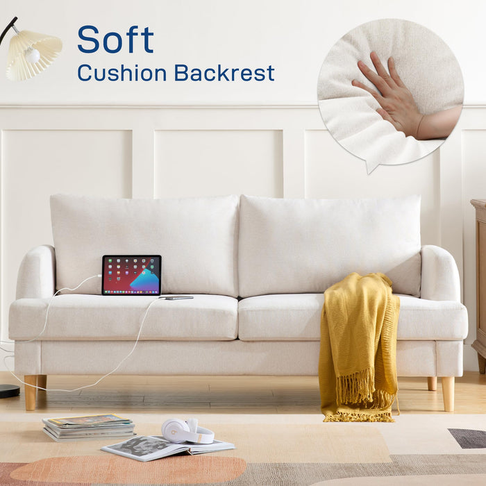 Small Loveseat Sofa for Living Room - 70'' Beige Couch with USB for Bedroom and Office - Modern Love Seat Sofa Deep Seating for Apartment Furniture - Comfy Two Seater Couches Sleeper Sofas (Off-white)