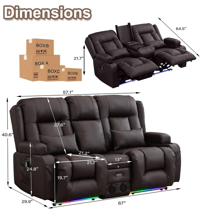 TUNYI Power Loveseat Recliner Sofa with Massage & Heat Home Theater Seating with Console Electric Recliner RV Sofa with USB/Outlet/Storage/Side Pocket/LED Light/Speaker (Brown, Loveseat)